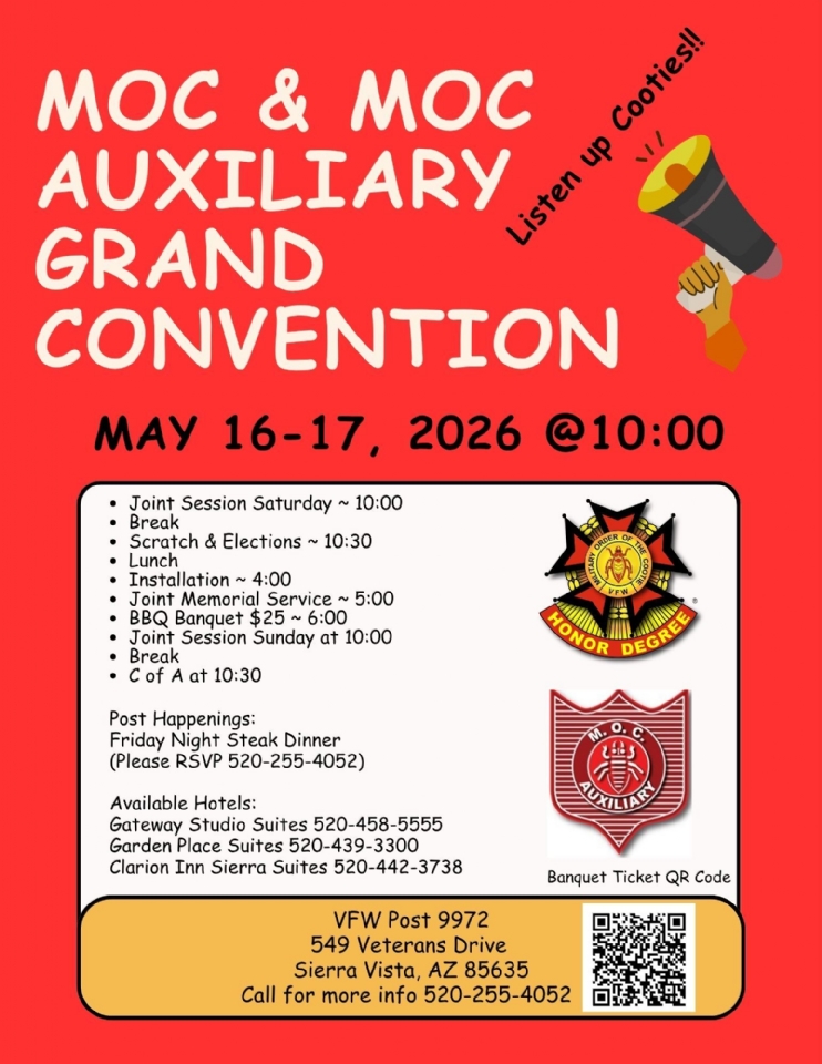 Our objectives – Clean fun, harmless frolic, good comradeship and a desire to increase our circle of friends in the VFW and the M.O.C., services to the VFW, the widows and orphans in our National Home, the hospital program of "Keep ‘Em Smilin’ in Beds of White.” At all times, neat appearance, conduct becoming a Cootie and gentle person, while in public and at VFW or M.O.C. activities.